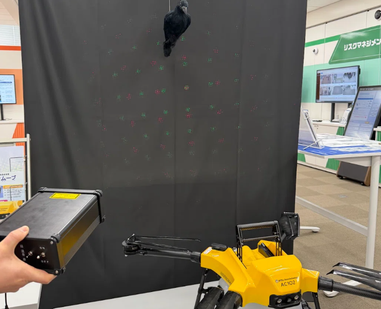 展示ブースでは、ドローンを活用したさまざまなソリューションも紹介されていました。農業分野ではAC102と連携した鳥獣害対策レーザーの実演が行われ、実際の運用についてもご説明いただきました。